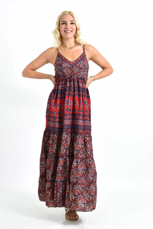 Γυναικείο φόρεμα μακρύ εμπριμέ μεταξωτό