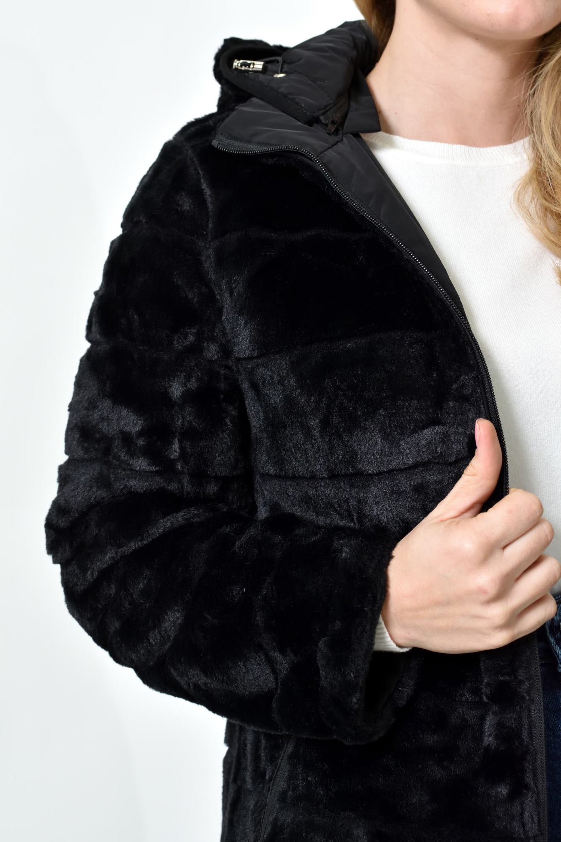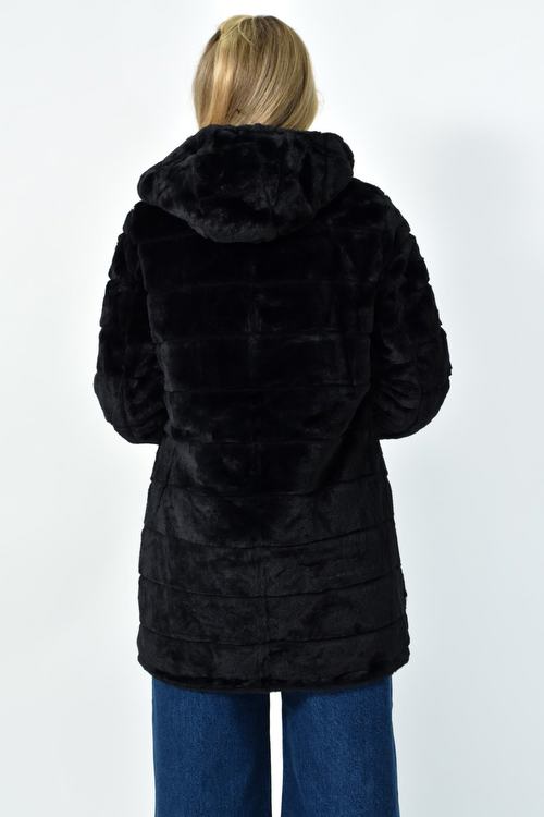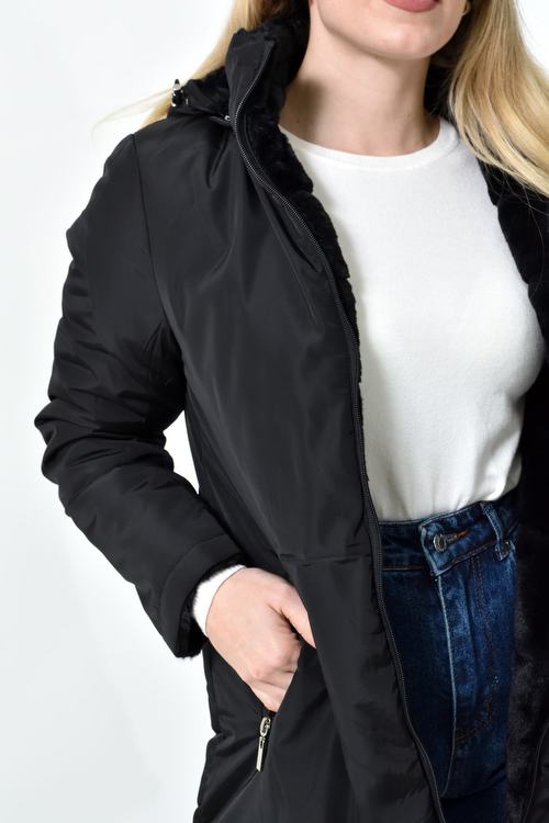 Μπουφάν Διπλής Όψεως (Ντουμπλφας) με Γούνα & Κουκούλα - Μαύρο
