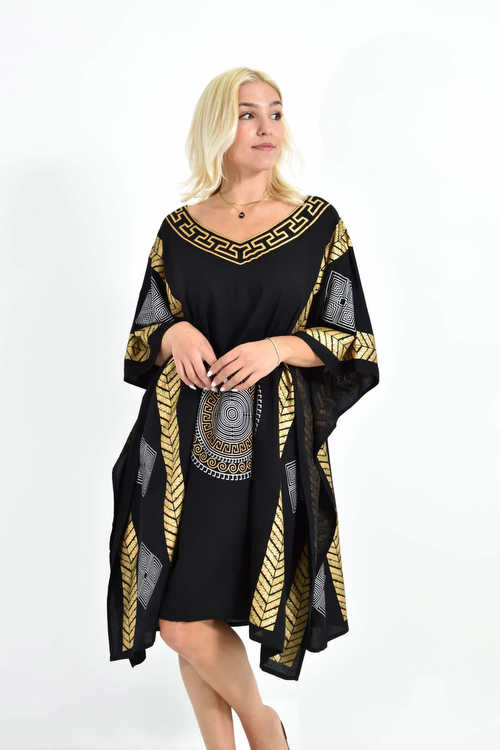 Καφτάνι Μαύρο με Χρυσά Μοτίβα