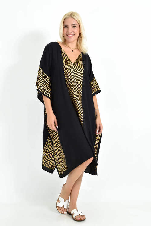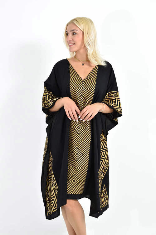 Καφτάνι Μαύρο με Χρυσά Μοτίβα
