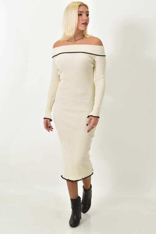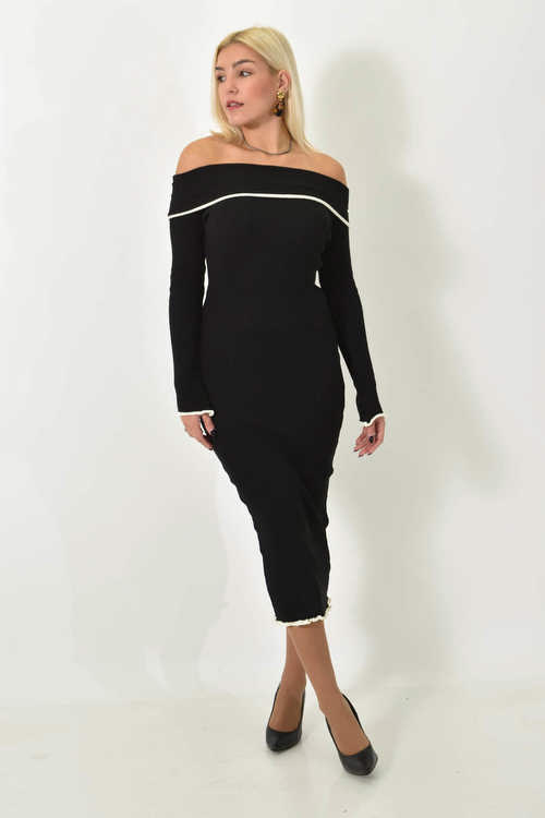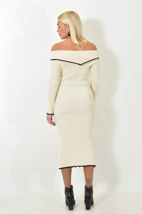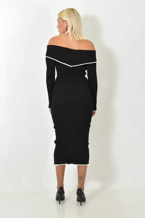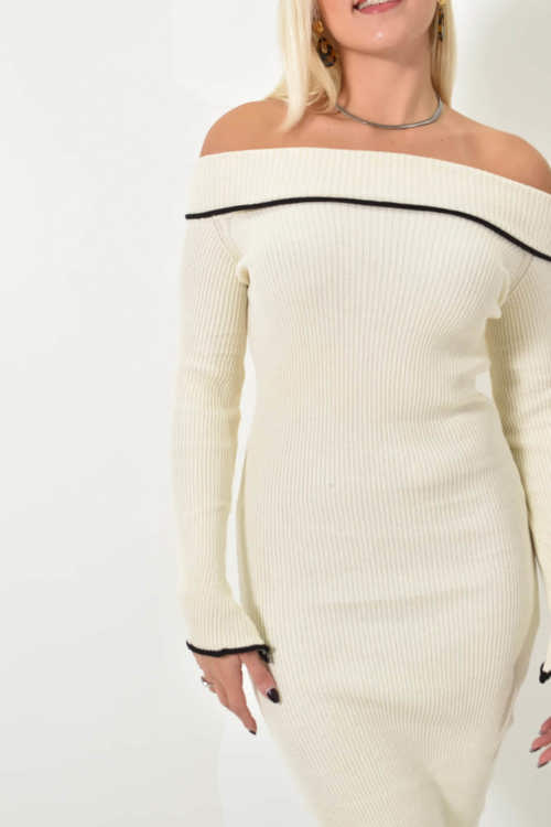 Μίντι φόρεμα στράπλες με ρέλι σε αντίθεση