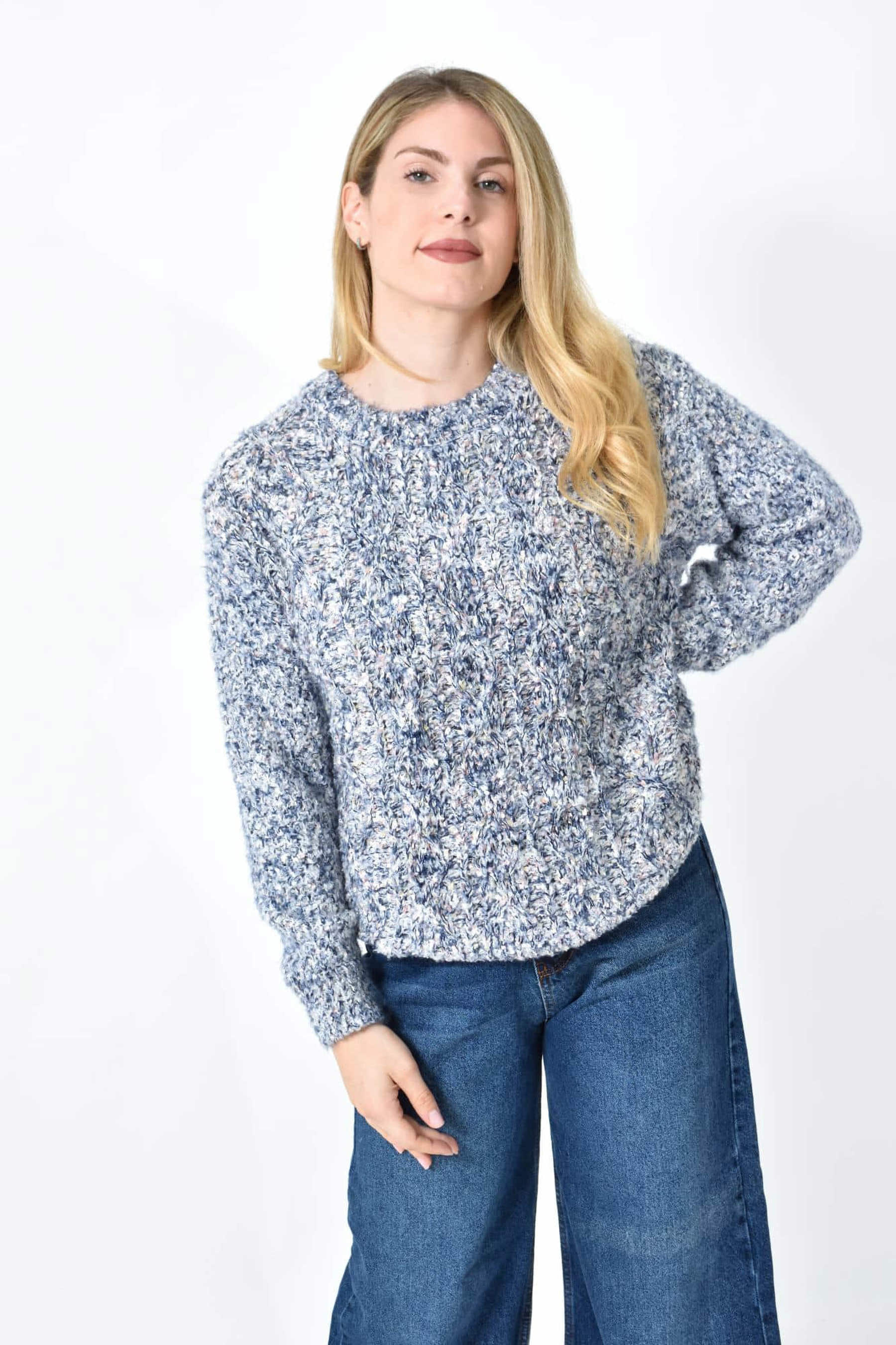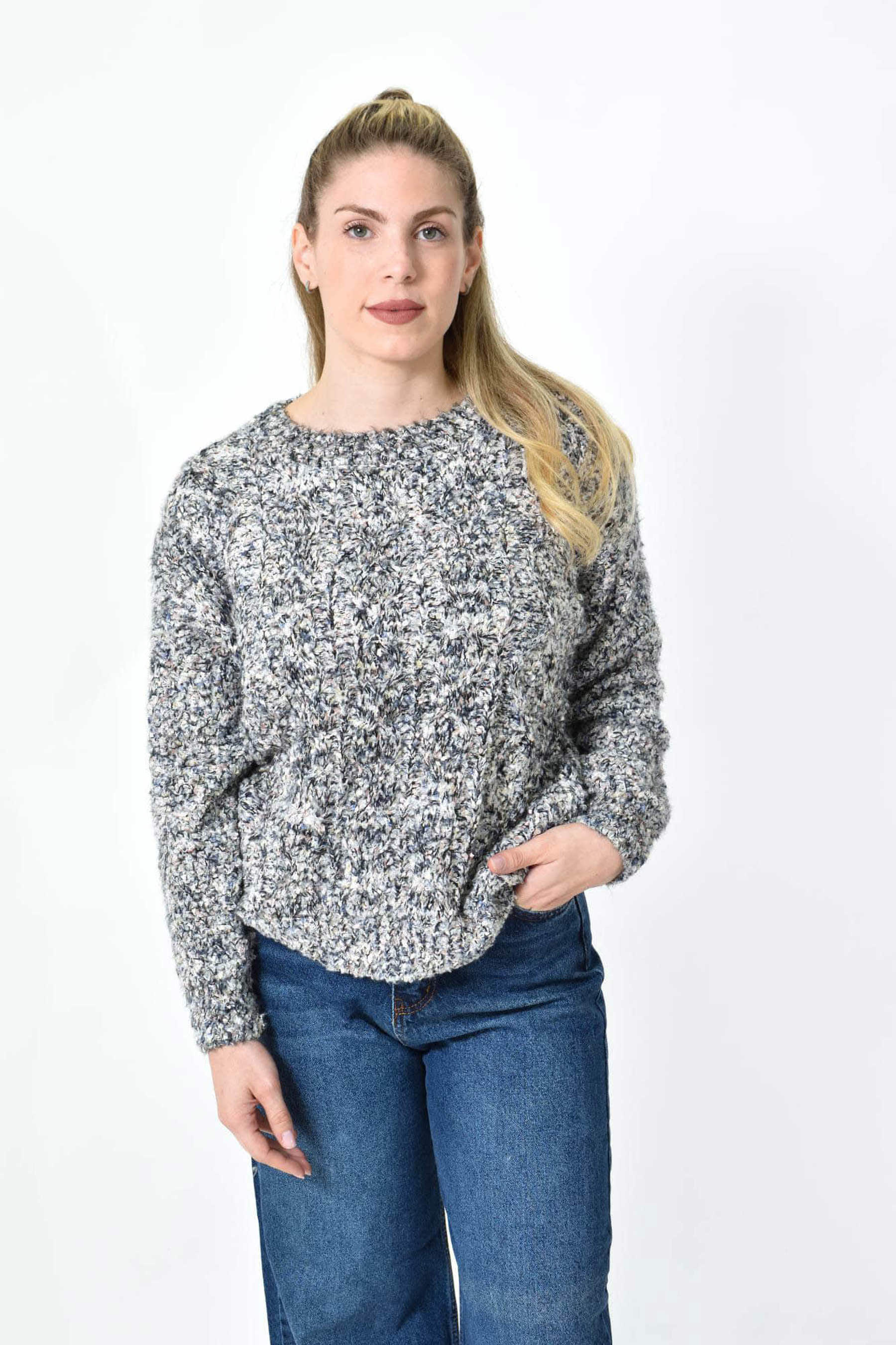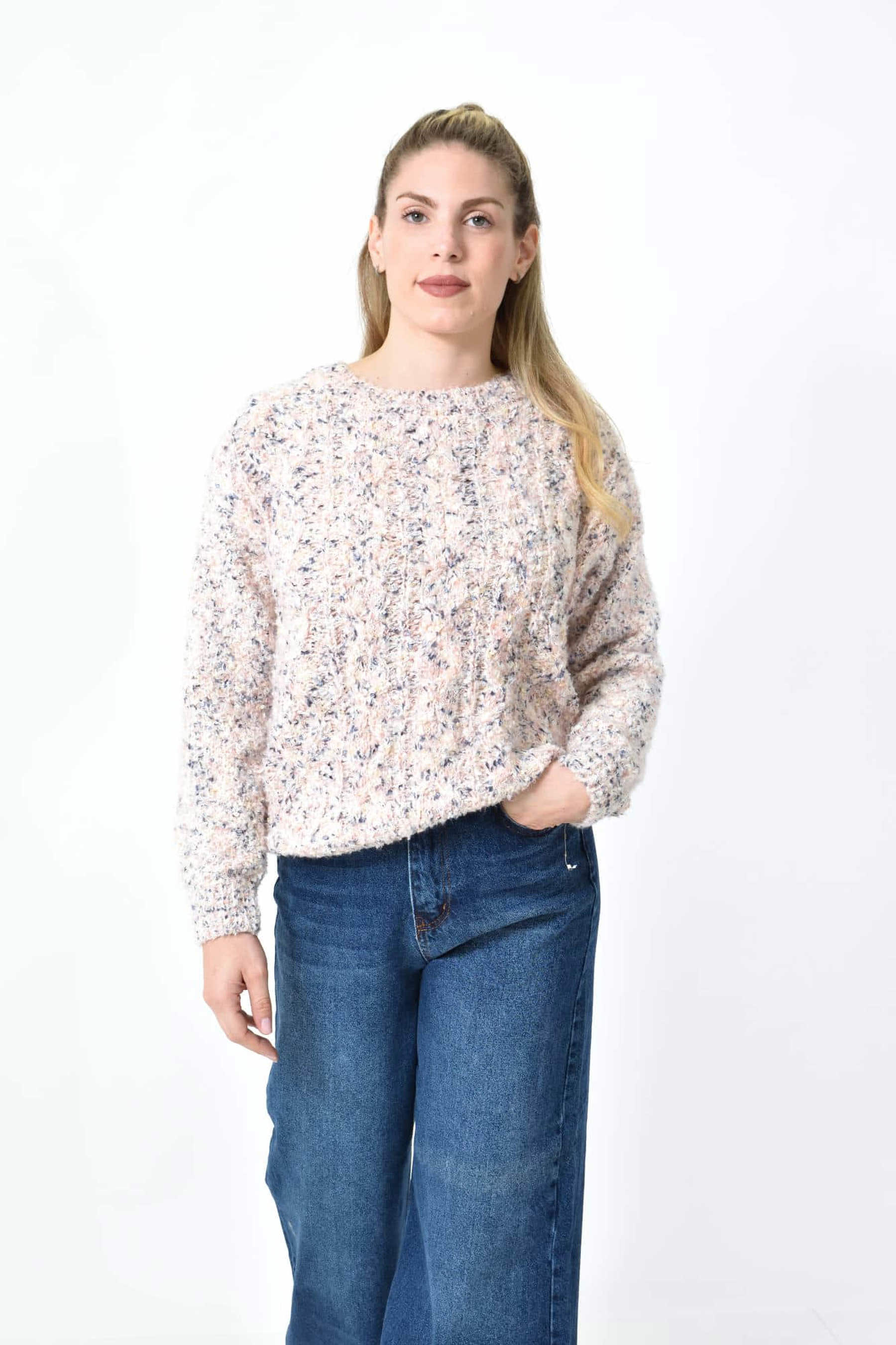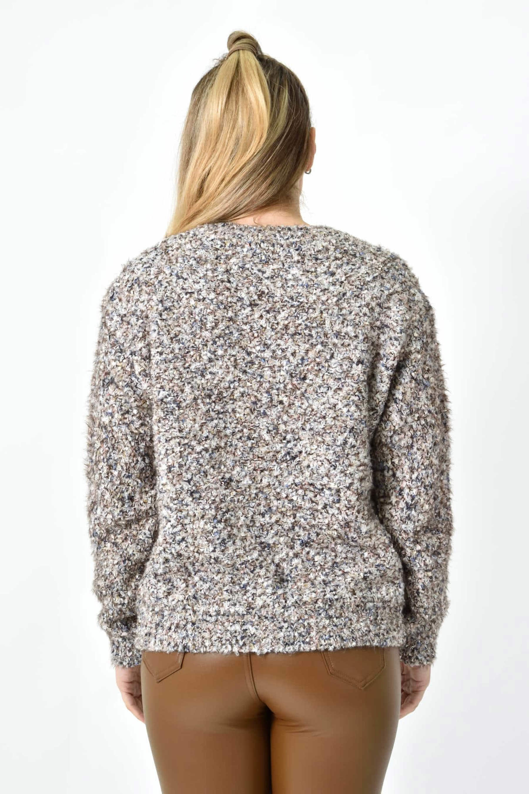 Πλεκτή αφράτη πουλόβερ με πολύχρωμες νηματιές