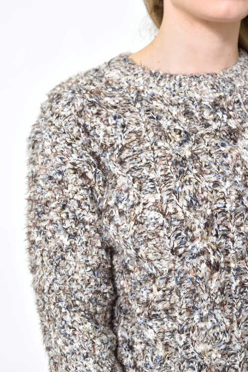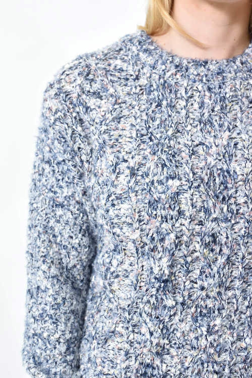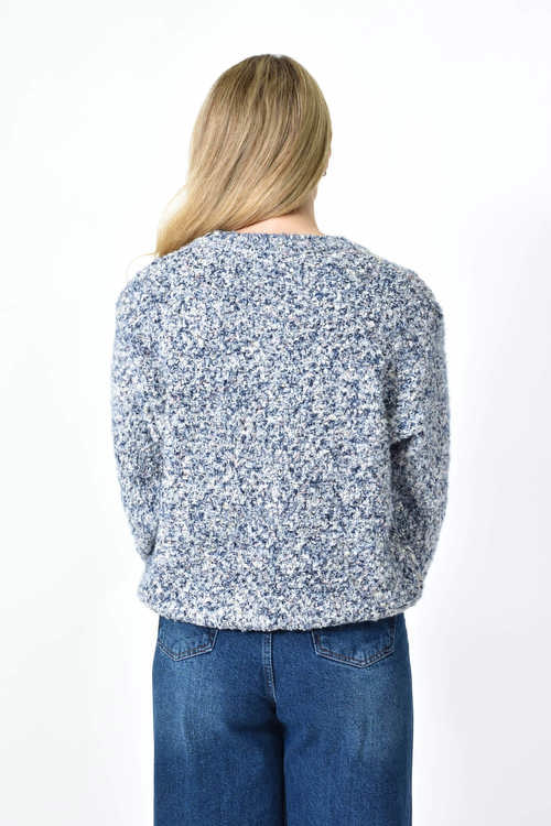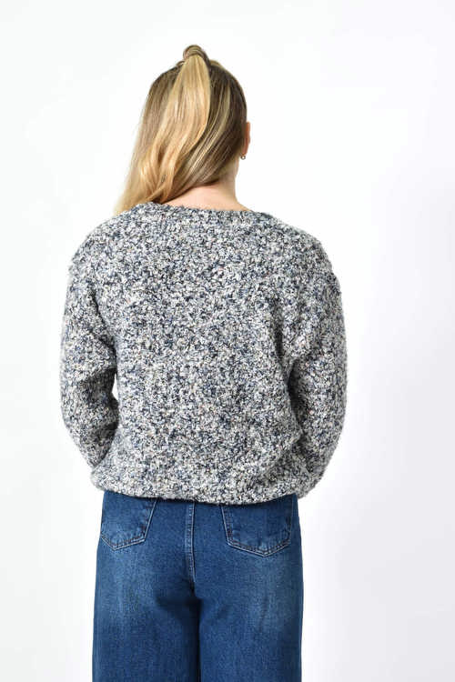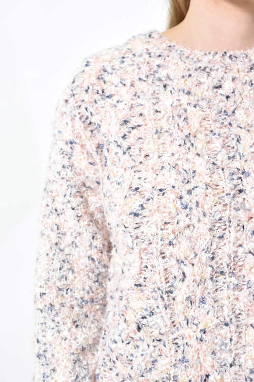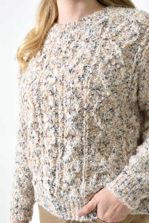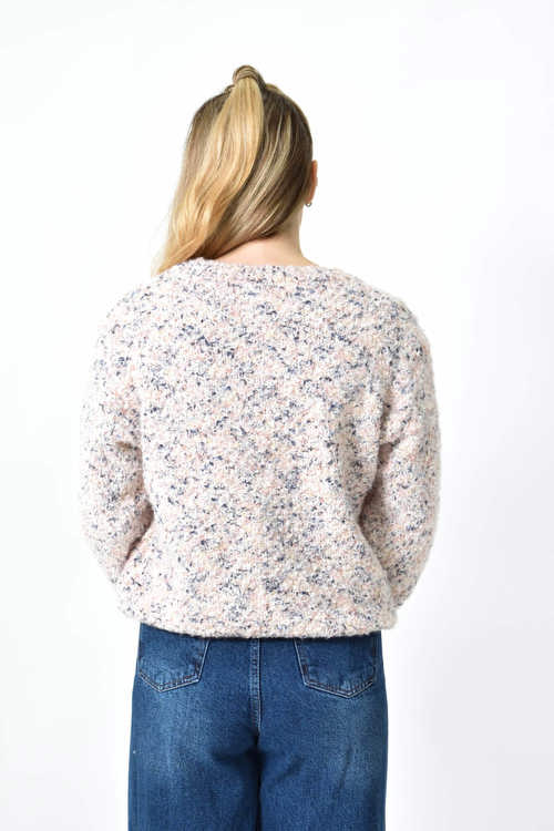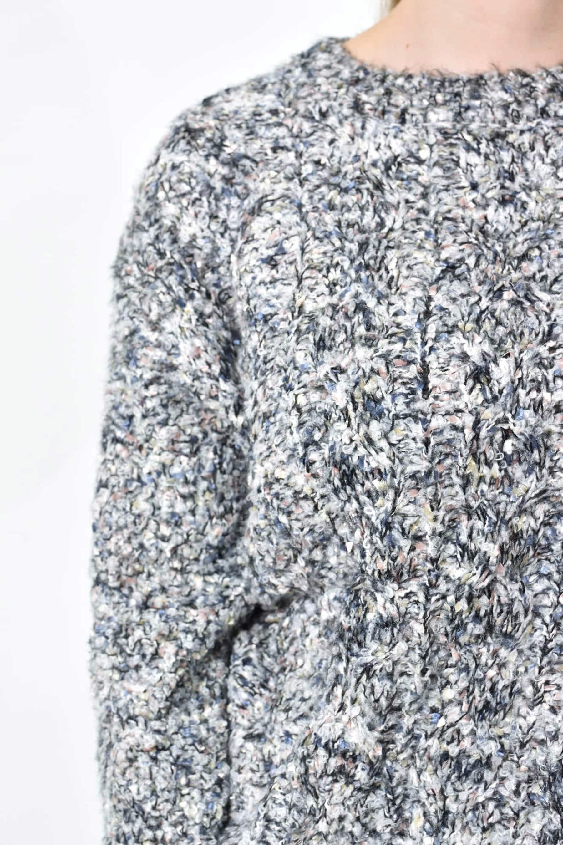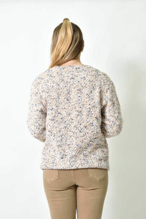 Πλεκτή αφράτη πουλόβερ με πολύχρωμες νηματιές