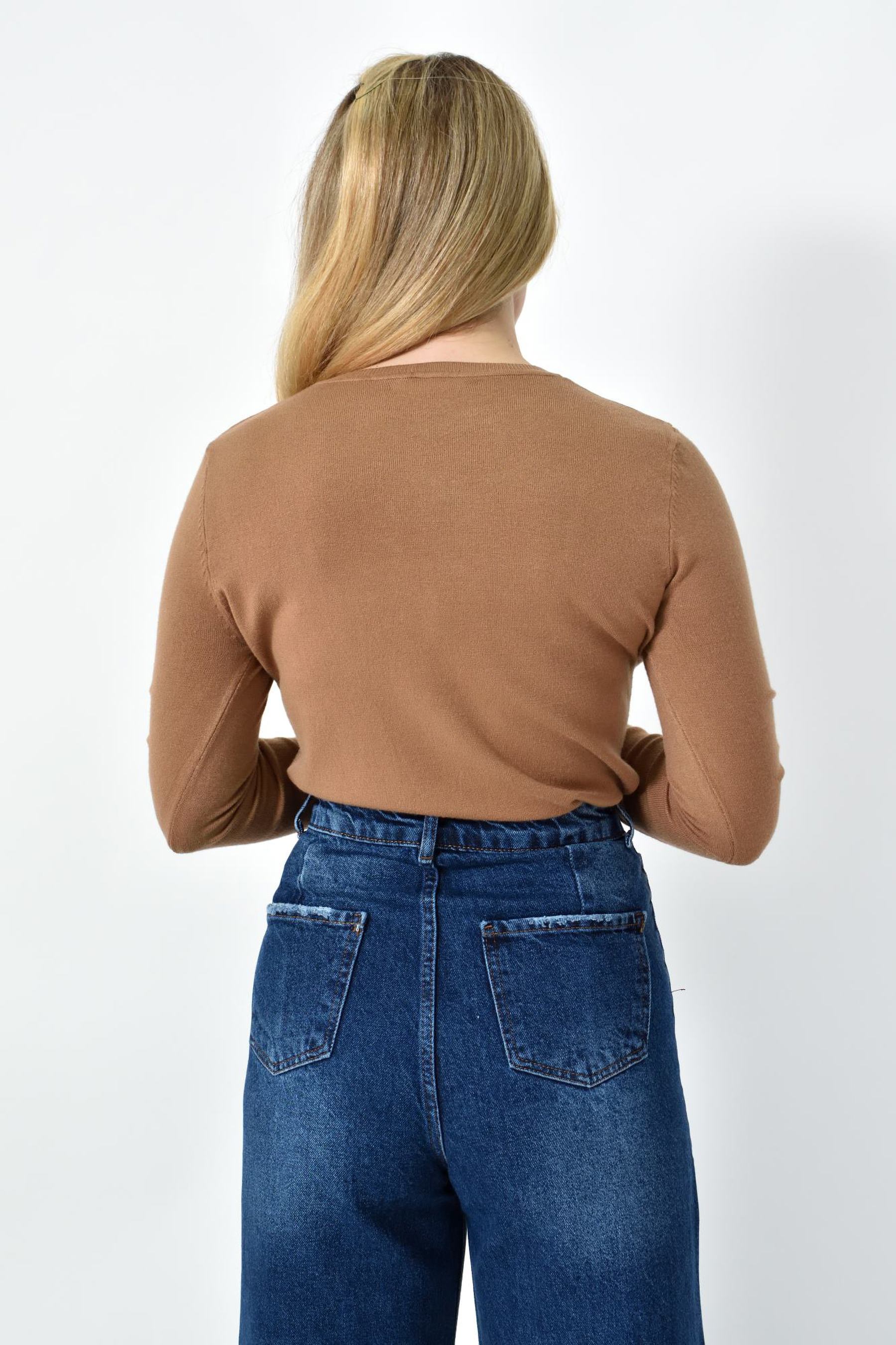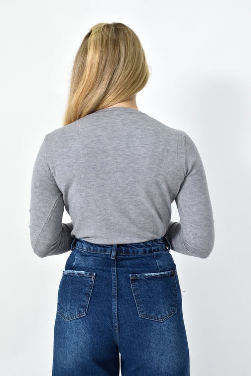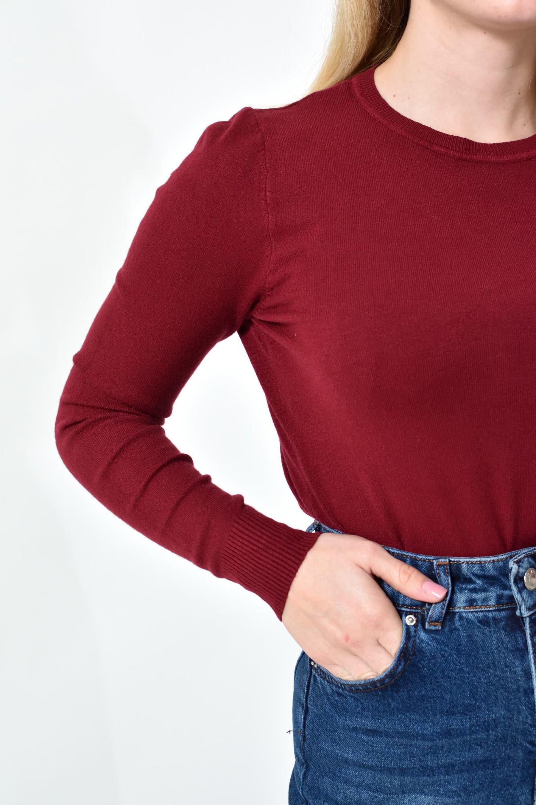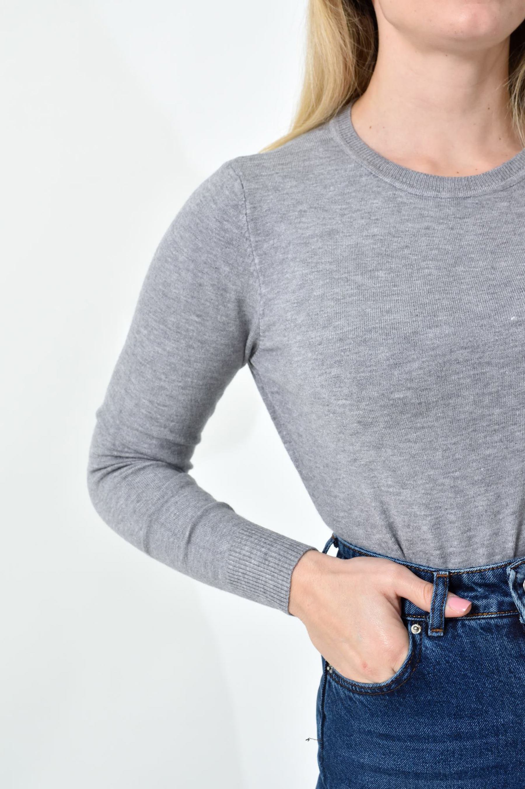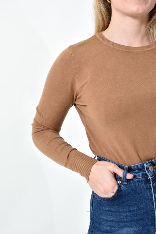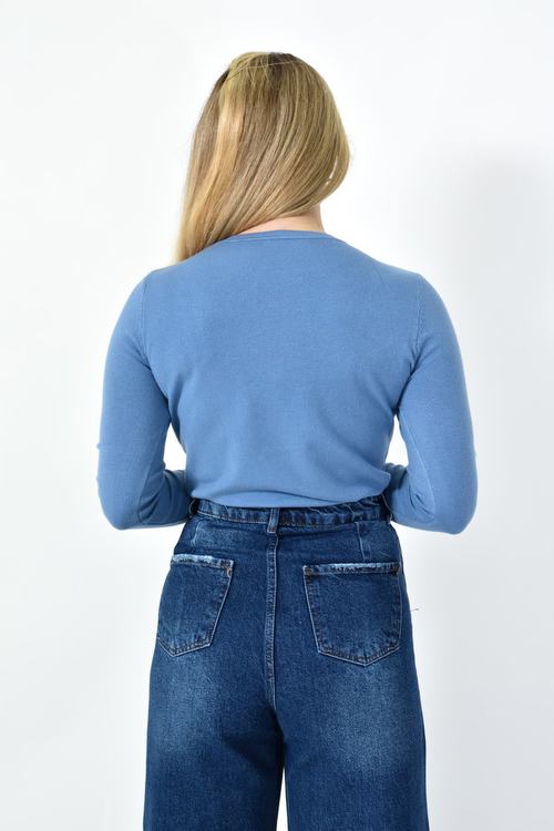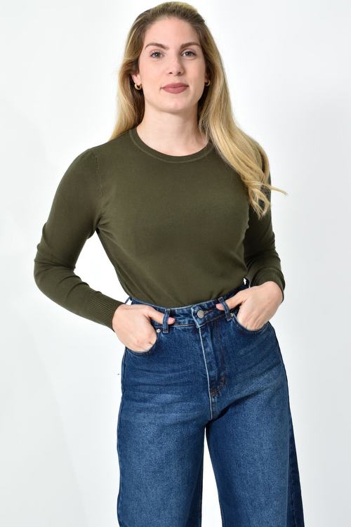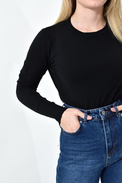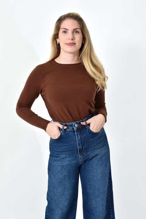 Πλεκτή Μπλούζα Ζέρσεϊ με Στρογγυλή Λαιμόκοψη