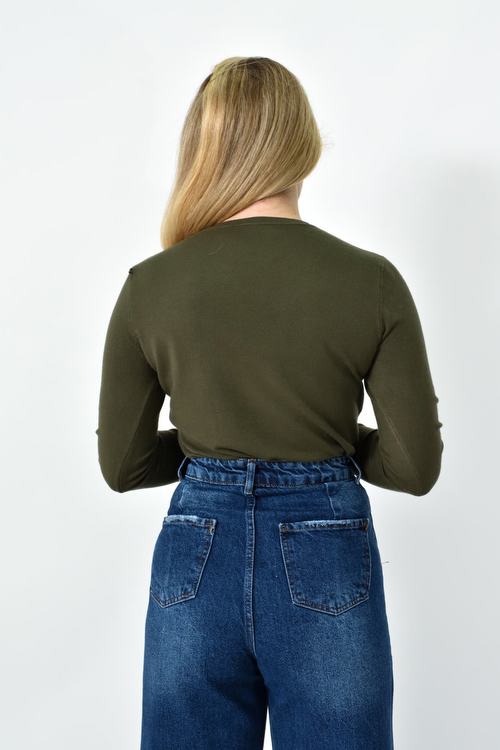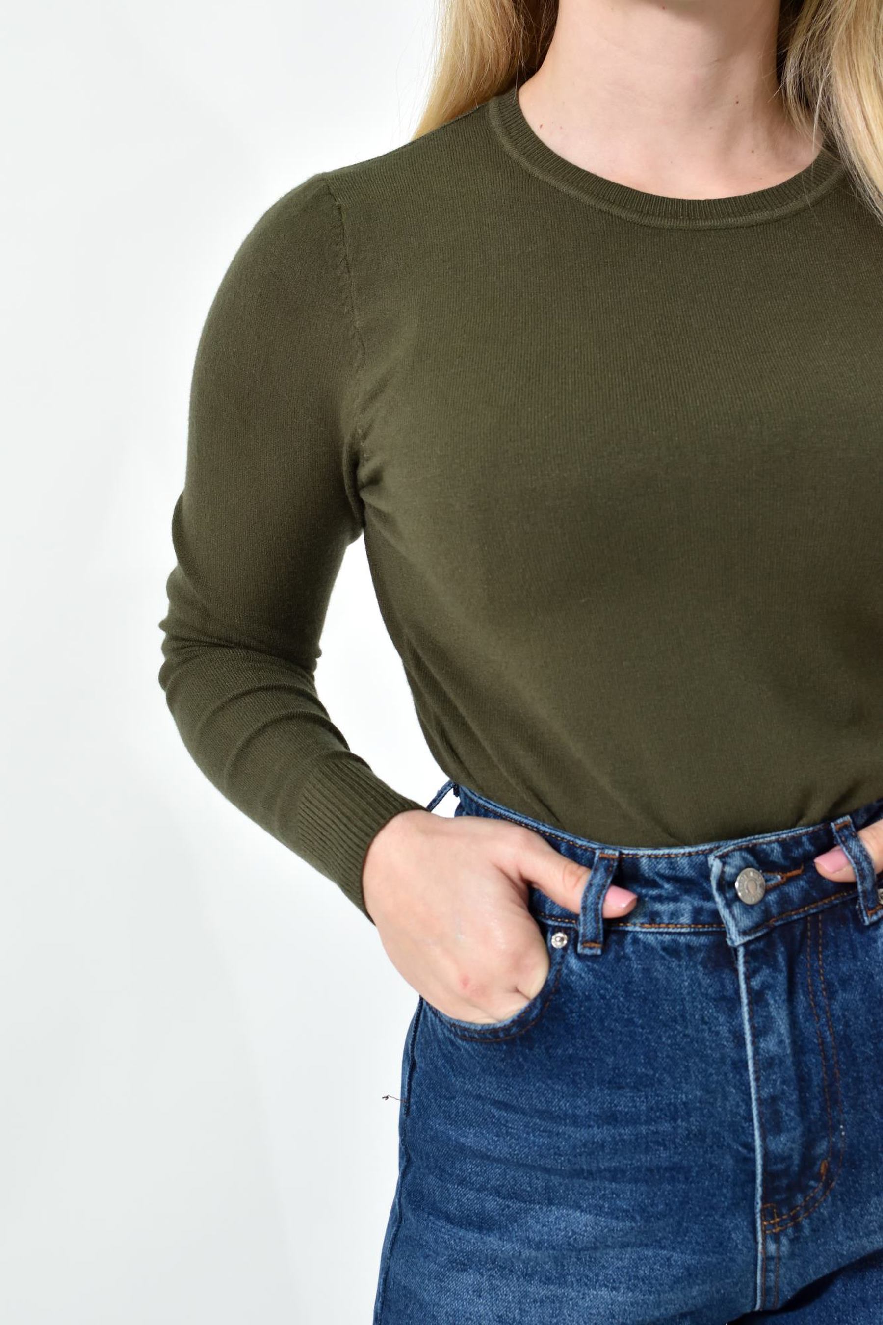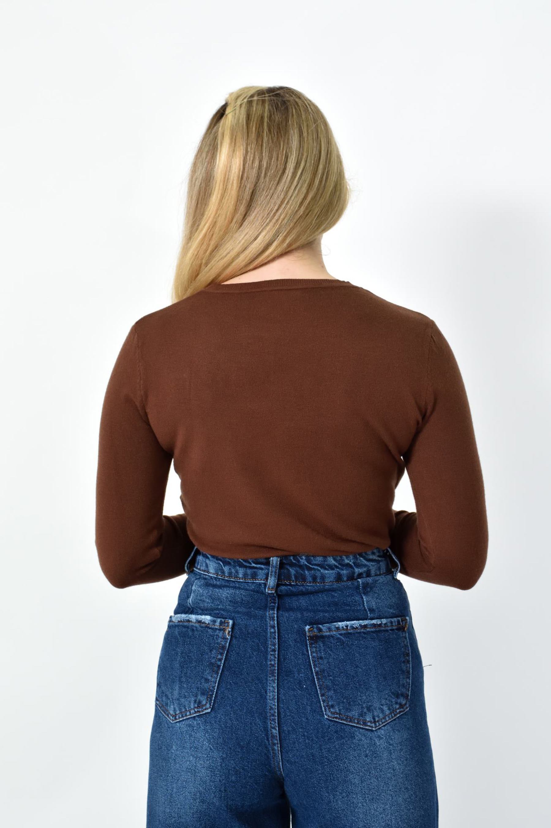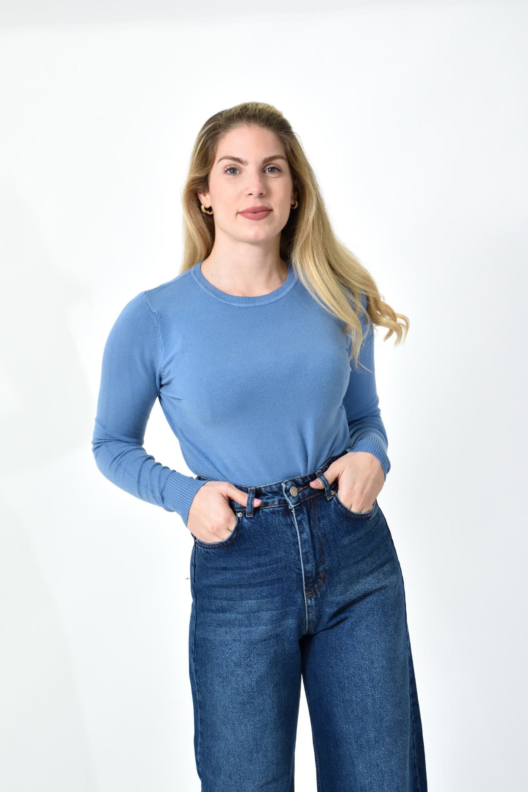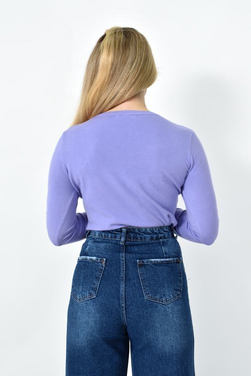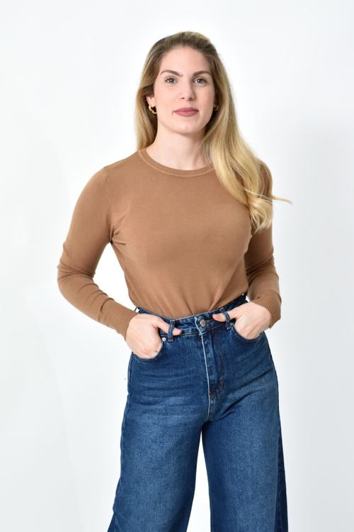 Πλεκτή Μπλούζα Ζέρσεϊ με Στρογγυλή Λαιμόκοψη