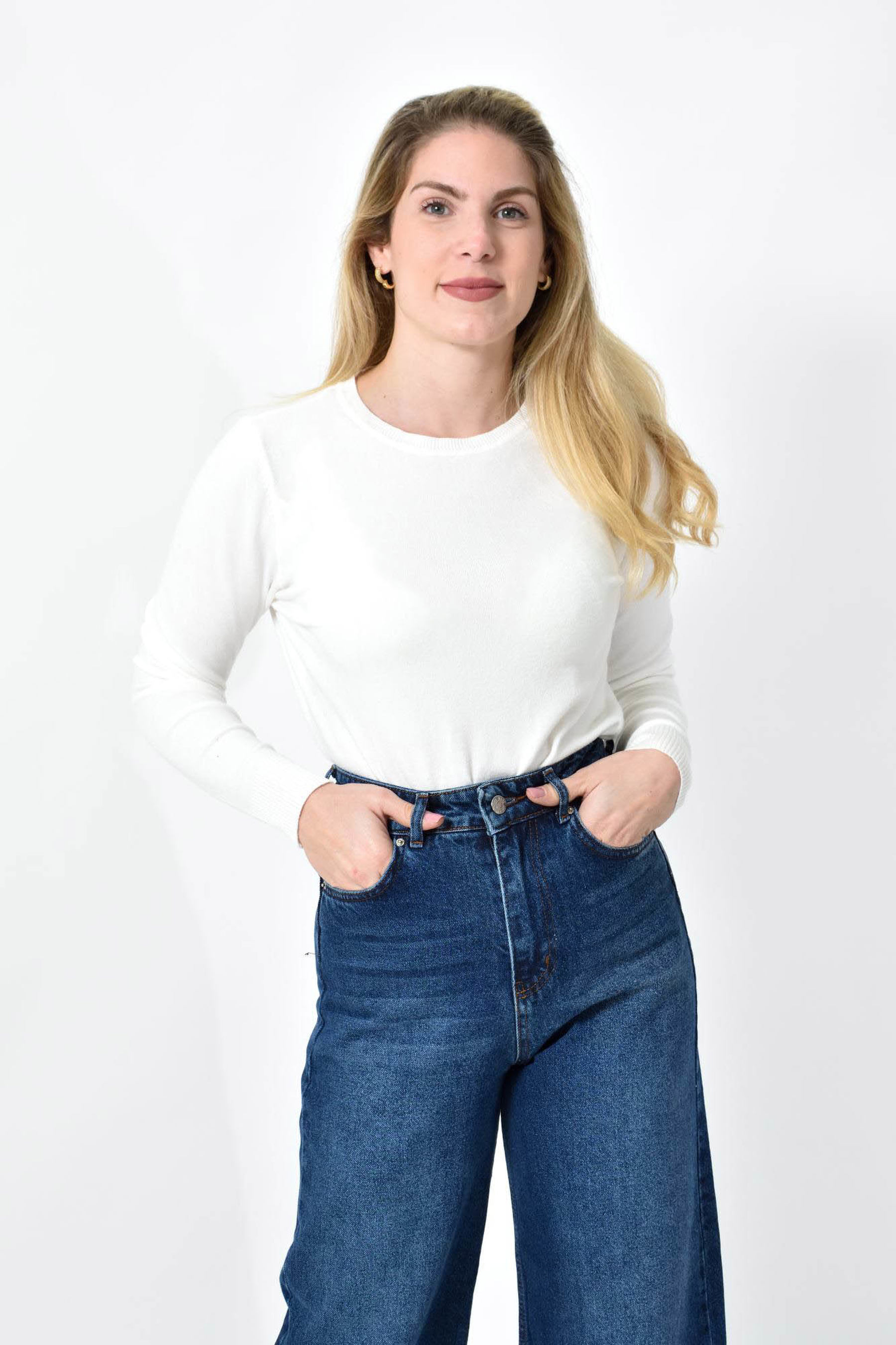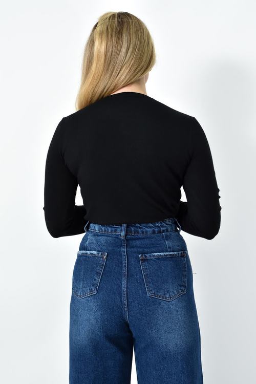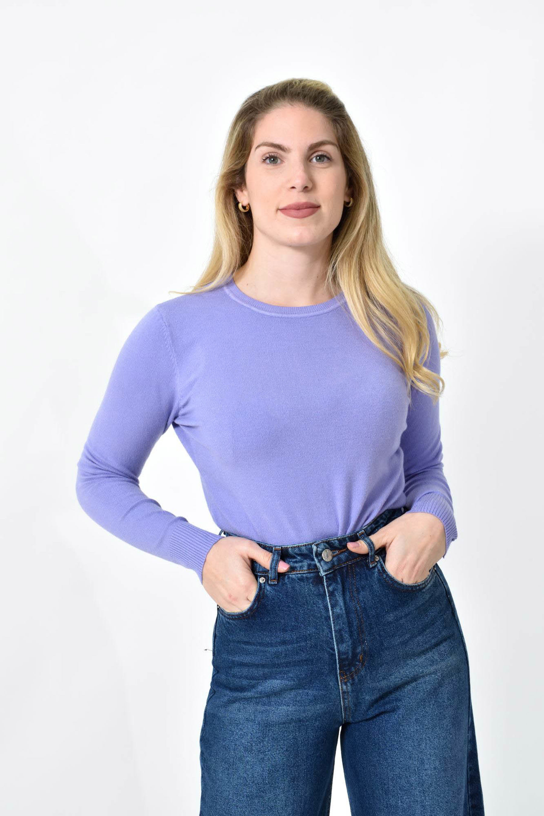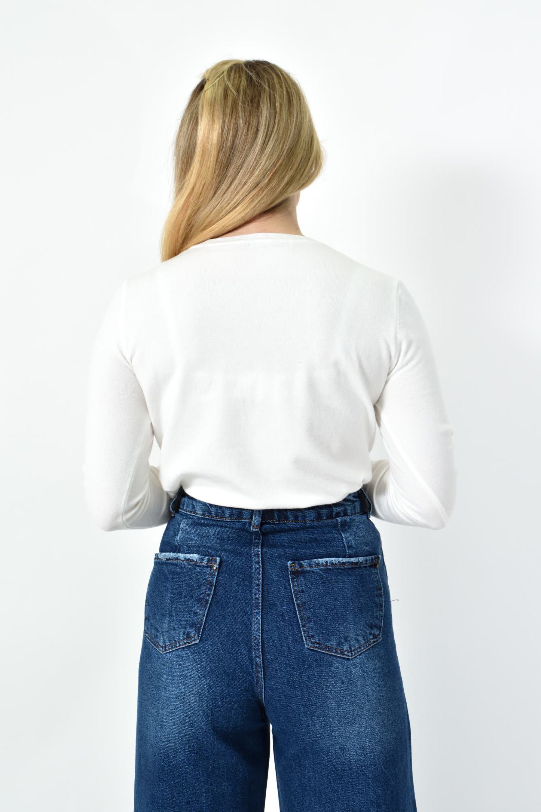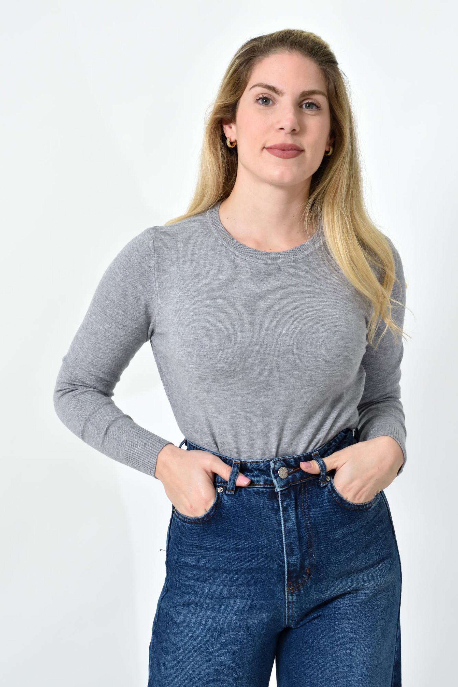 Πλεκτή Μπλούζα Ζέρσεϊ με Στρογγυλή Λαιμόκοψη