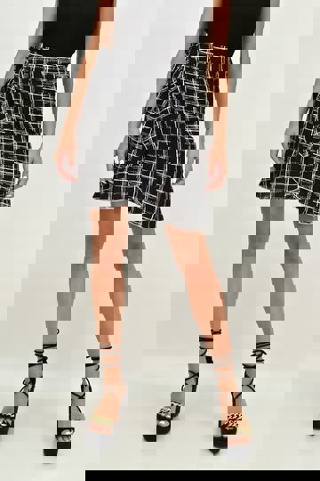 Κοντή Καρό Φούστα Με Κουμπιά Στο Πλάι