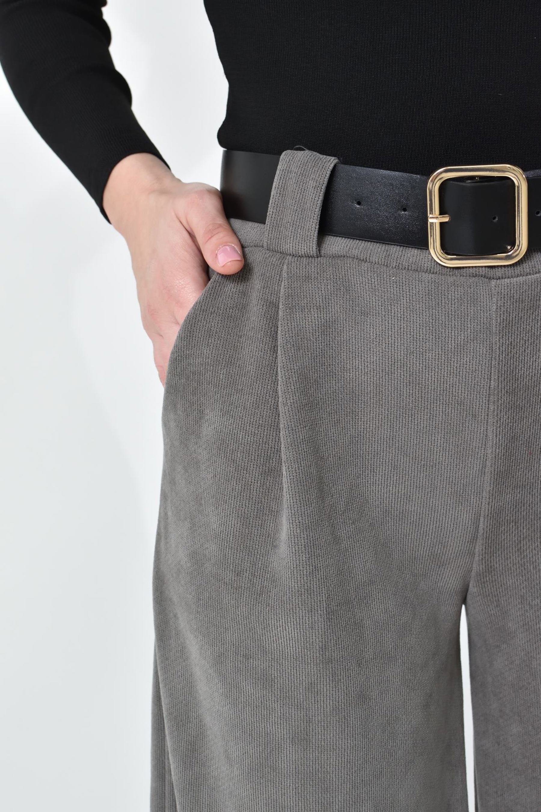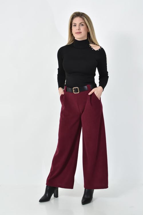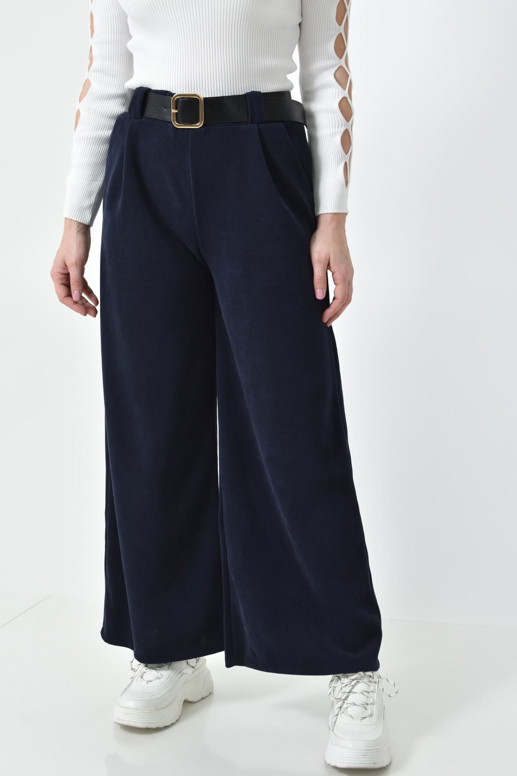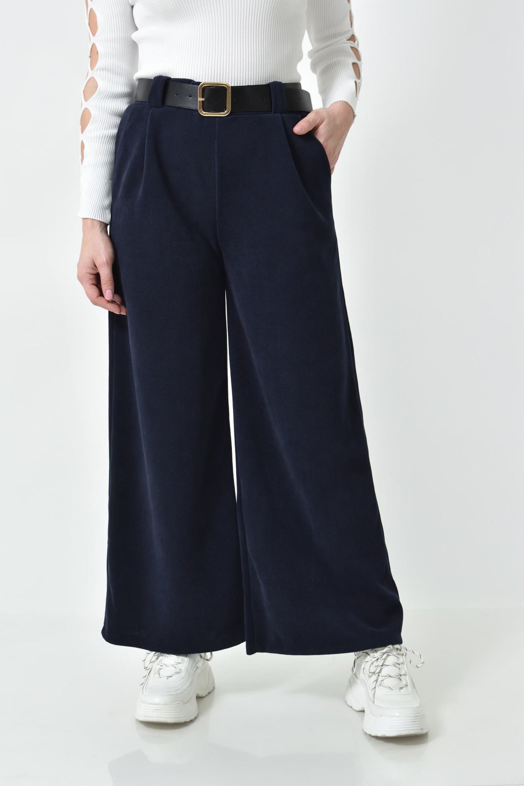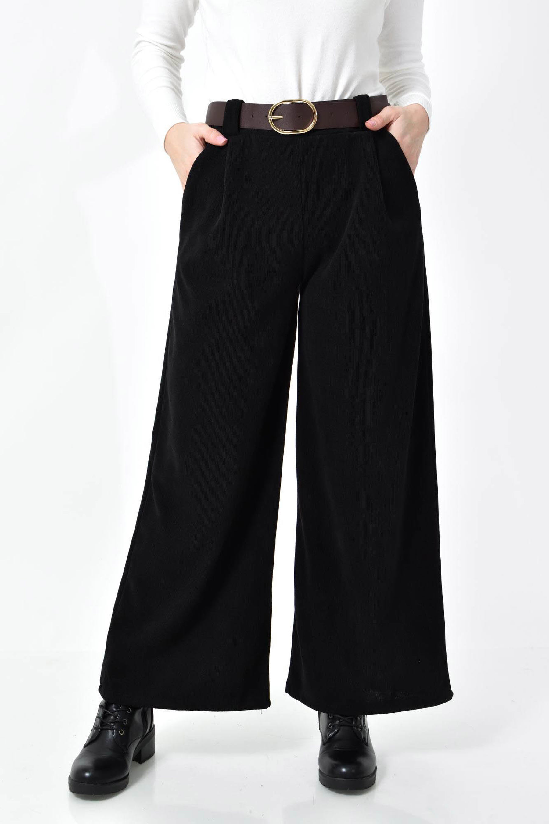 Ψηλόμεση Παντελόνα με Τσέπες, Λάστιχο & Ζώνη Δερματίνη σε ίσια γραμμή