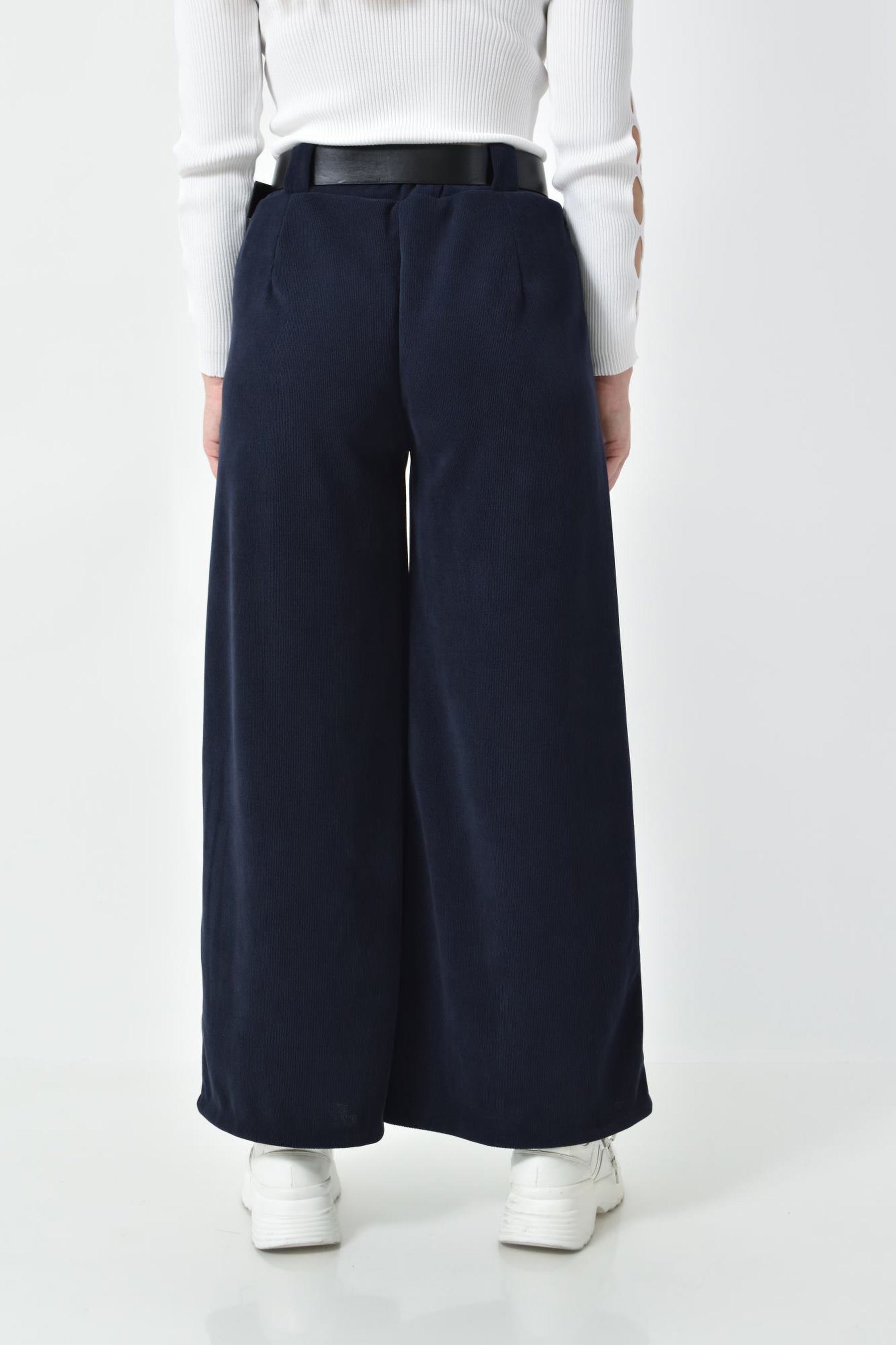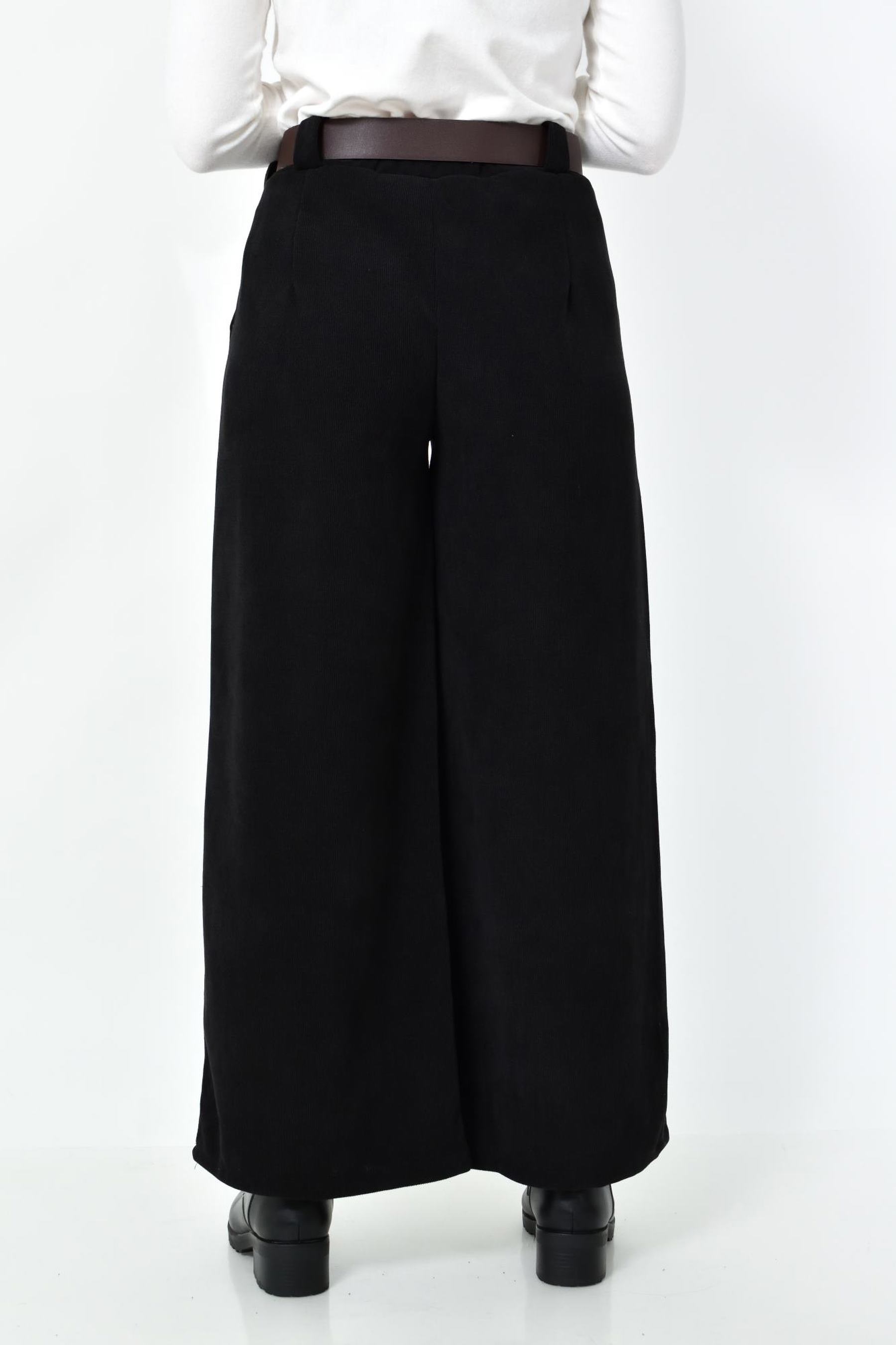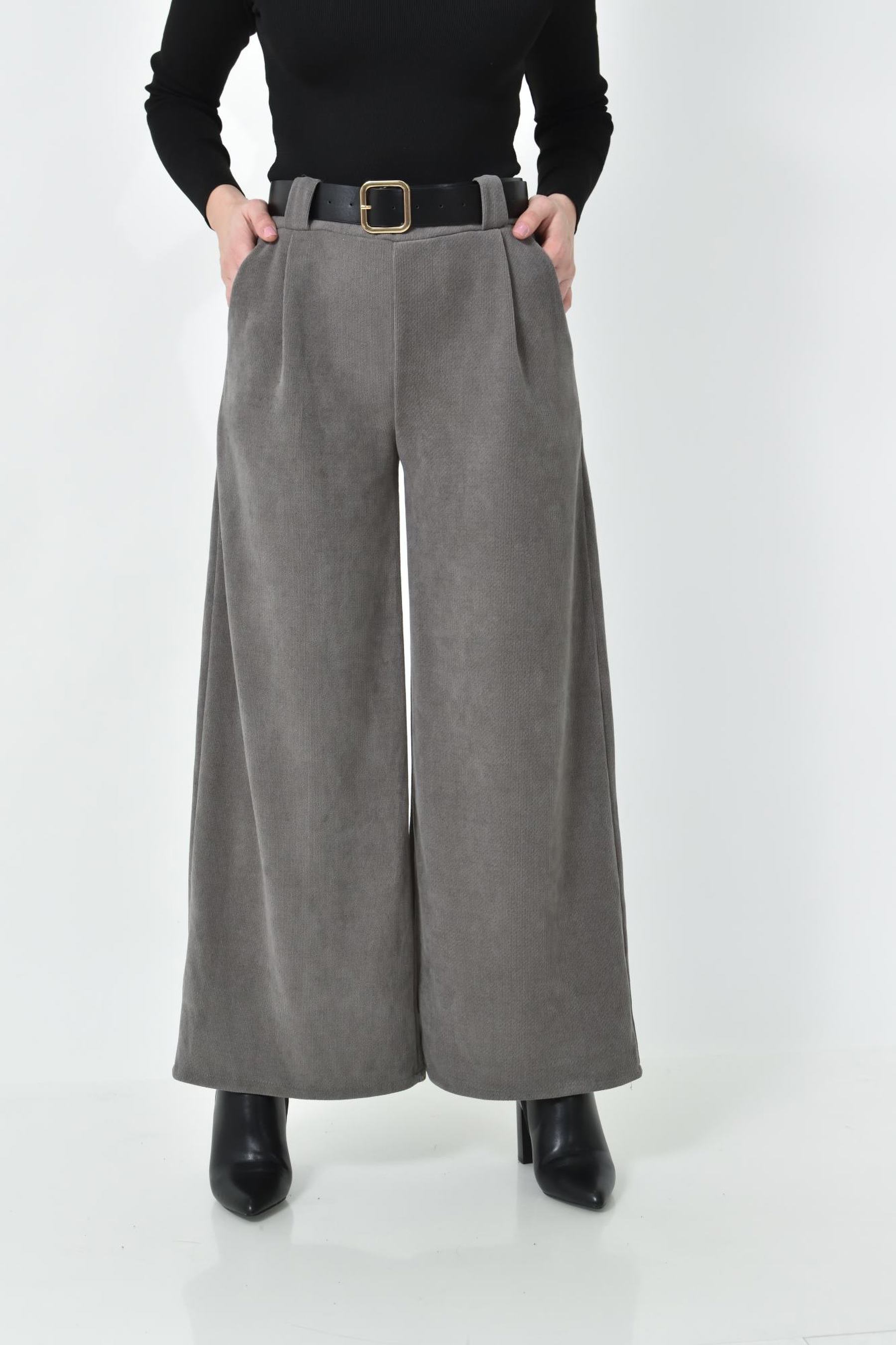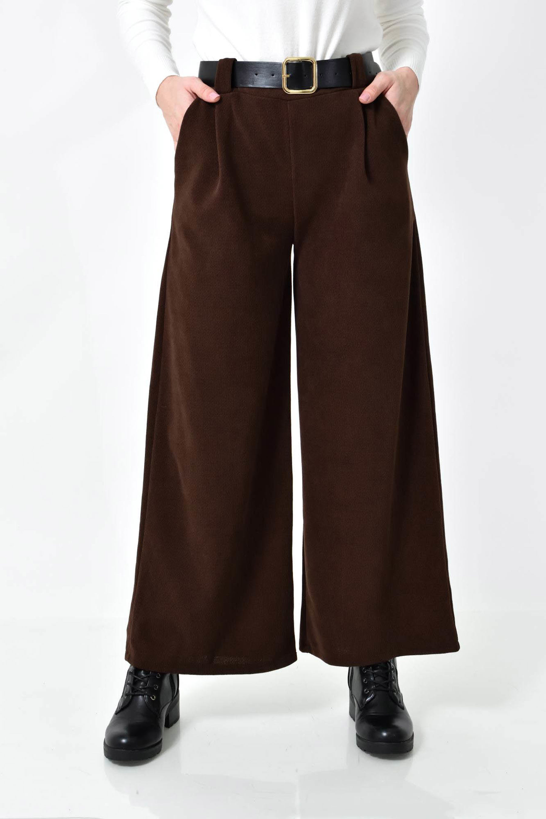 Ψηλόμεση Παντελόνα με Τσέπες, Λάστιχο & Ζώνη Δερματίνη σε ίσια γραμμή