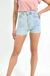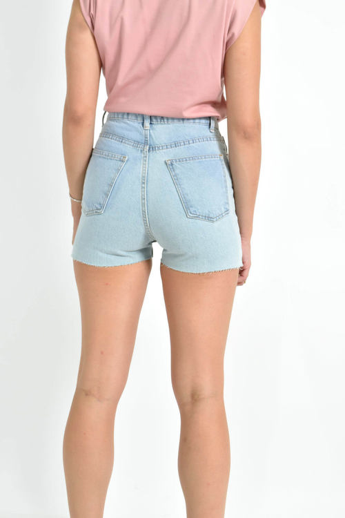 Ψηλόμεσο Denim Σορτς με Flame Σχέδιο