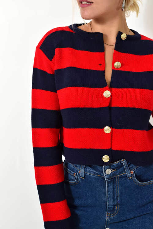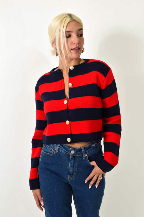 Γυναικεία ριγέ ζακέτα με χρυσά κουμπιά