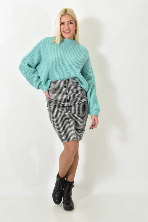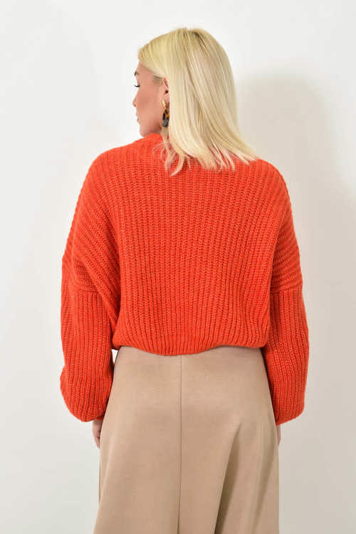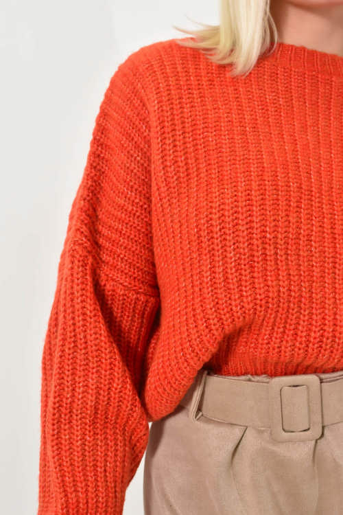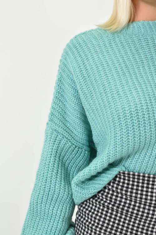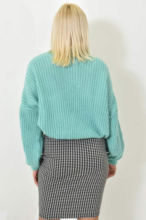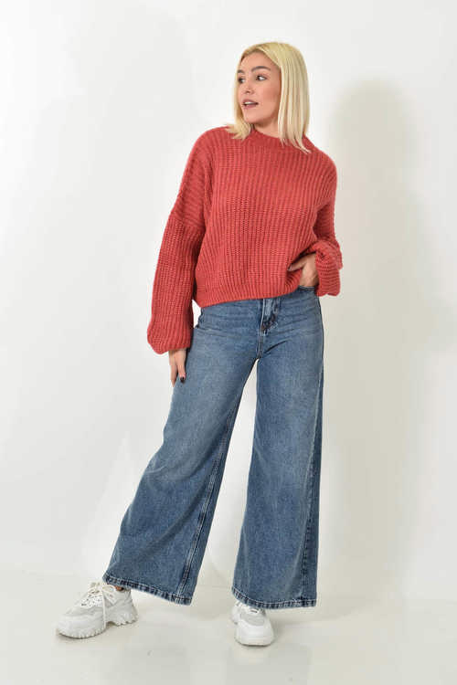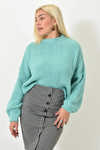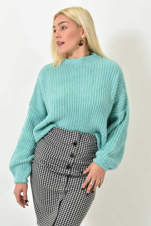 Πλεκτό Crop Πουλόβερ με Φουσκωτά Μανίκια
