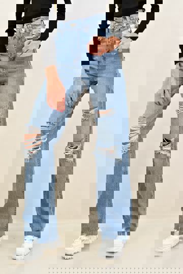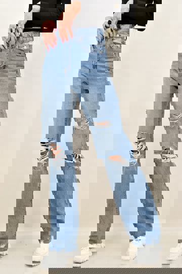 Τζιν Παντελόνι Straight Με Σκίσιμο