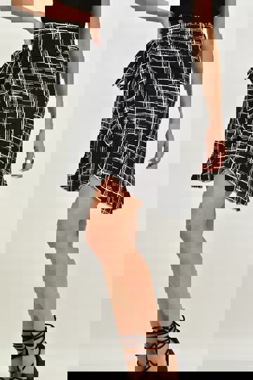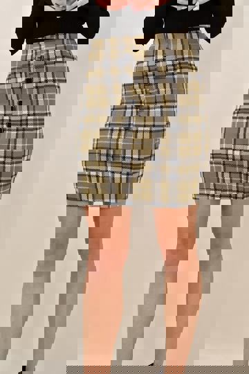 Κοντή Καρό Φούστα Με Κουμπιά Στο Πλάι