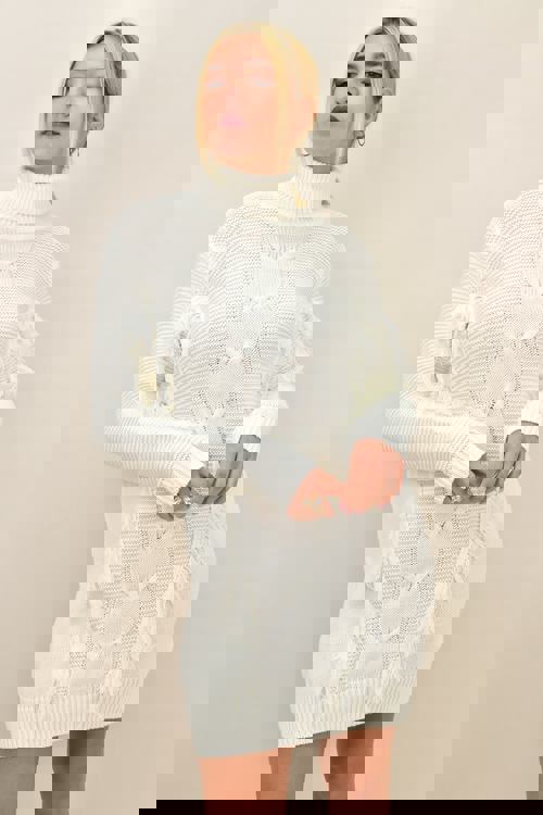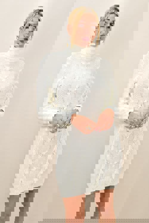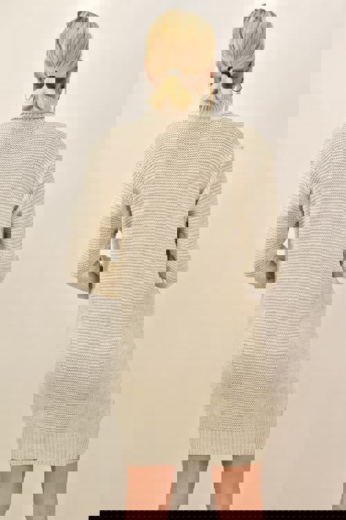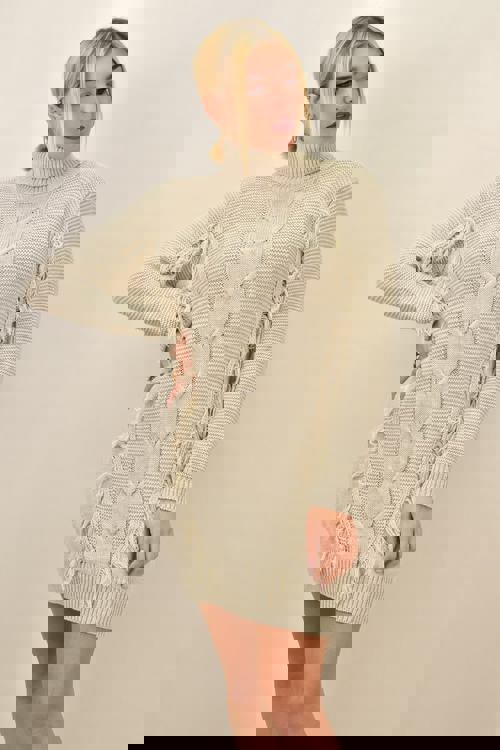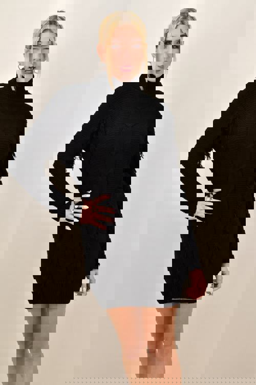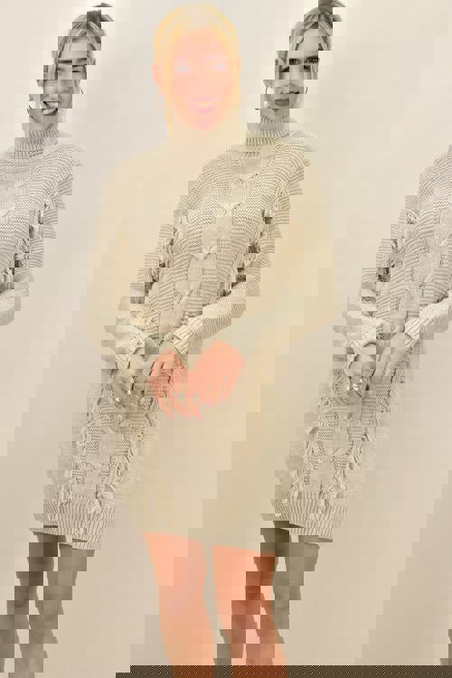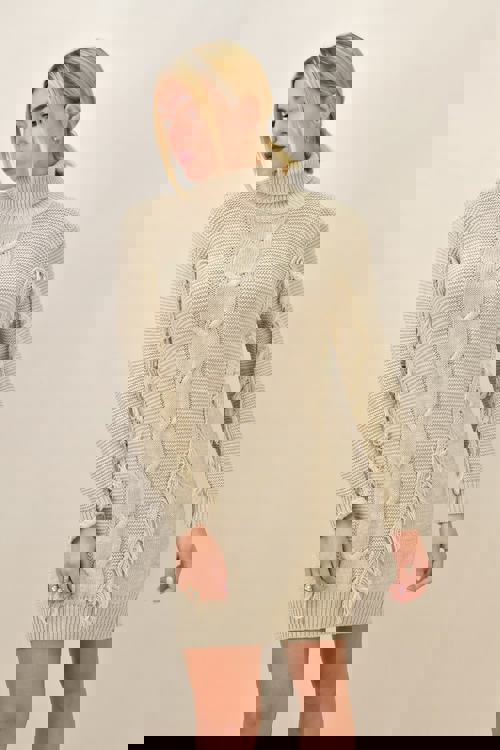 Γυναικείο πλεκτό φόρεμα με σχέδιο πλεξούδα και κρόσια