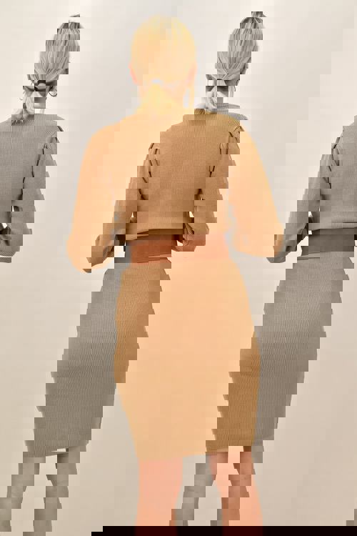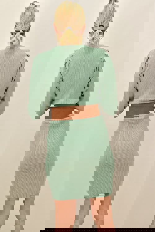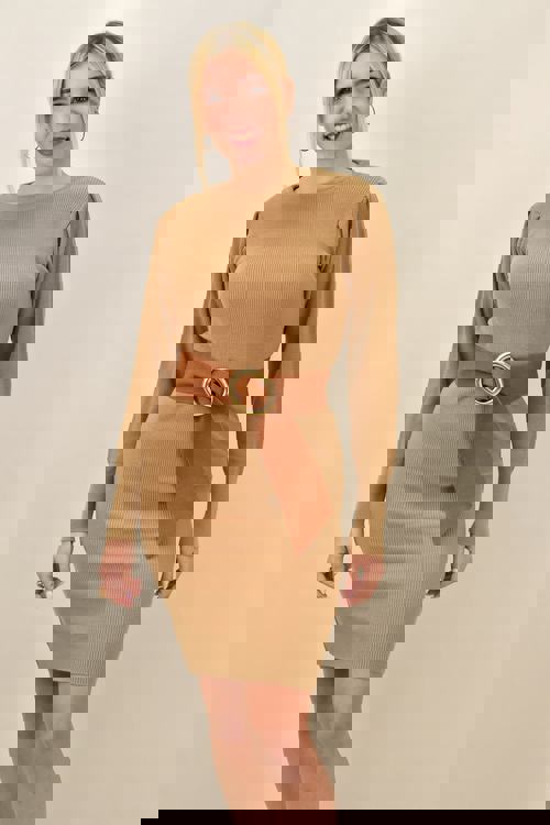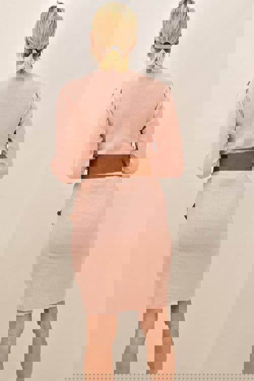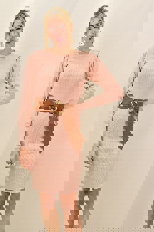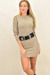 Κοντό πλεκτό φόρεμα με σούρα στα μανίκια