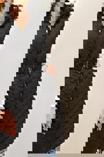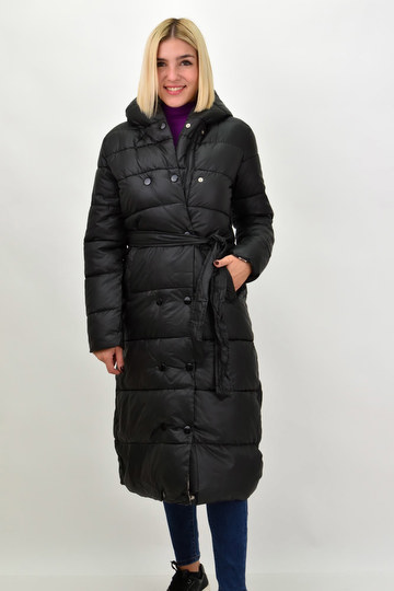 Καπιτονέ Μακρύ Μπουφάν Με Κουκούλα Μαύρο