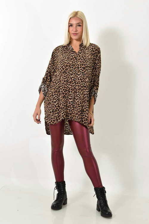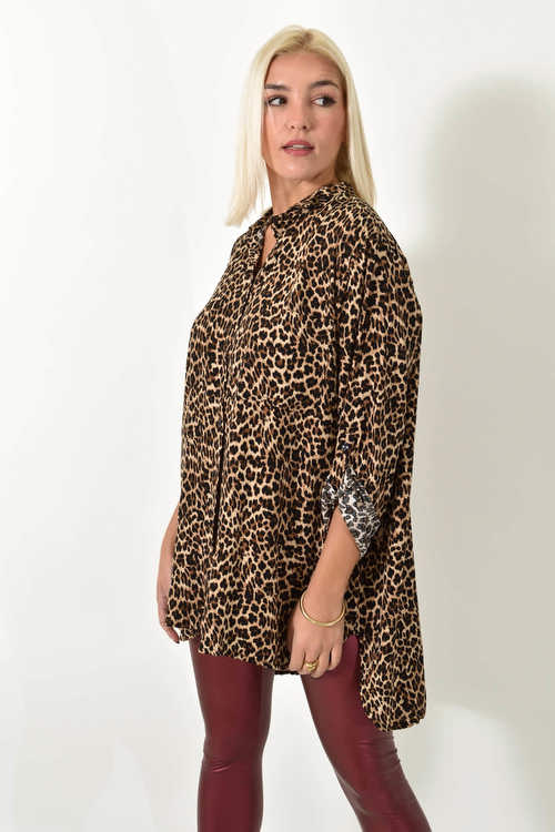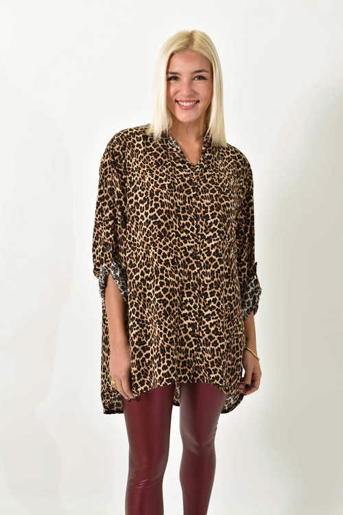 Λεοπάρ πουκάμισο με τριών τετάρτων μανίκια