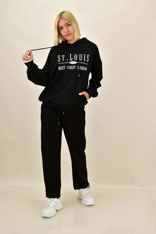 Σετ φόρμας φούτερ με κουκούλα και τύπωμα ST.LOUIS